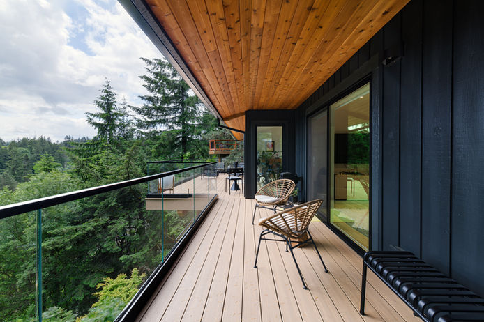 Warm wood ceilings were added under each deck to bring a sense of coziness to the modern structure. Lighting was carefully placed so the decks could be enjoyed in the evenings as well as during the day. These details may seem small, but they are what make the finished project feel polished and intentional.